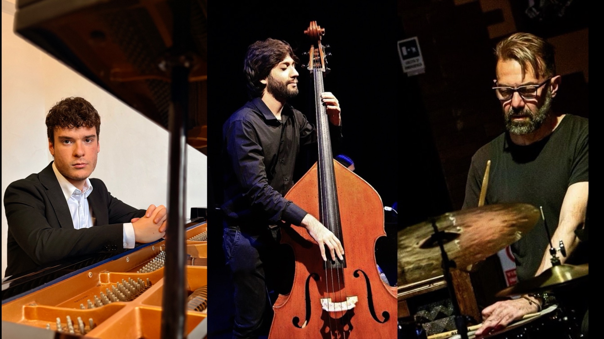 Il trio è guidato da Dario Rogato, pianista e compositore, musicista cresciuto con una forte curiosità verso linguaggi diversi e capace di portarli dentro il jazz con naturalezza. Accanto a lui Lucrezio De Seta alla batteria, tra le voci più esperte e versatili della scena italiana, e Flavio Cangialosi al contrabbasso, punto d’equilibrio tra profondità del suono e ricerca timbrica. Insieme costruiscono un interplay serrato ma sempre leggibile, dove ognuno contribuisce al racconto musicale.