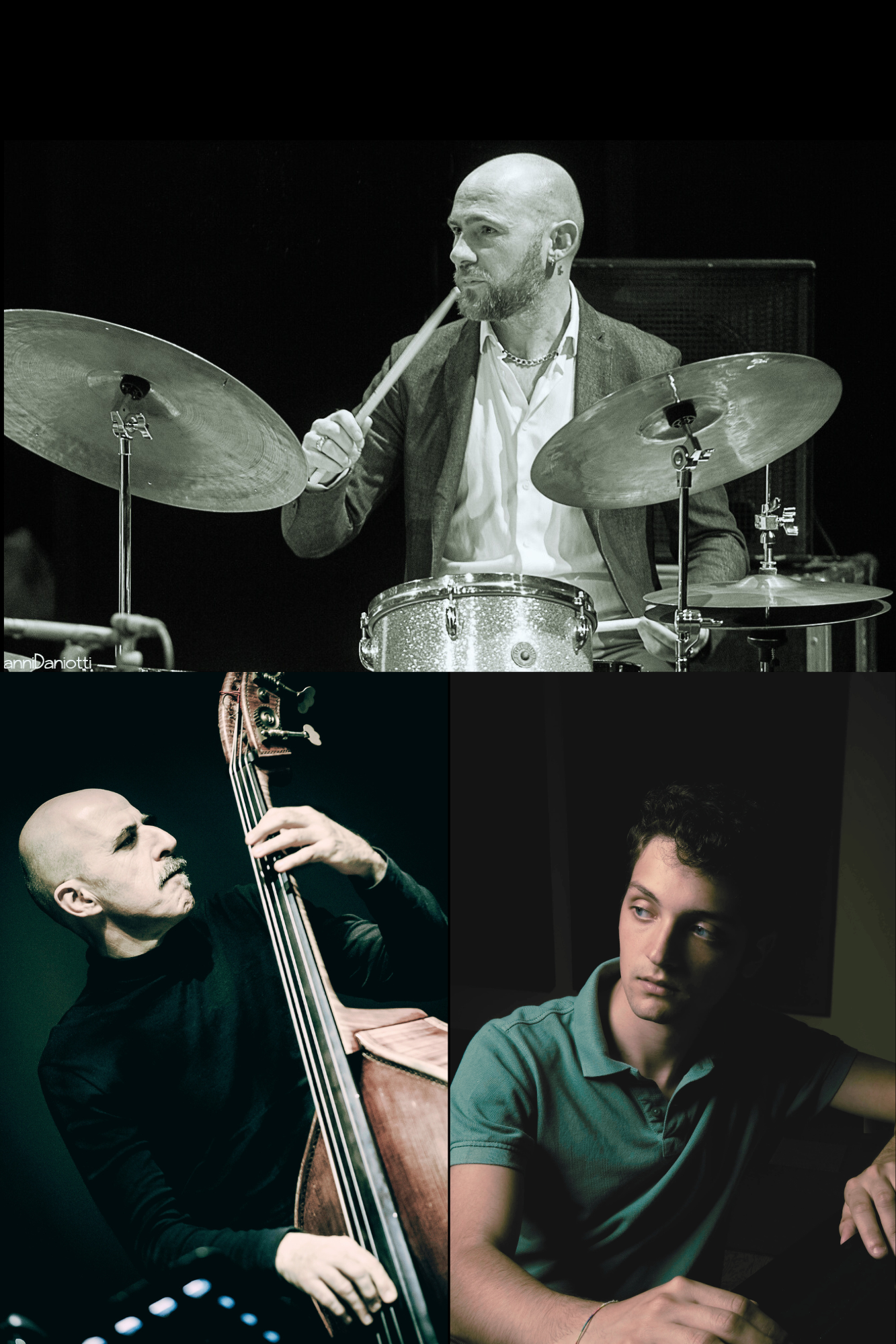 “IDENTITHREE” mette al centro l’idea di identità come incontro: tre voci diverse che si riconoscono, si spingono, si completano. In trio, la batteria non è soltanto motore ritmico, ma regia delle dinamiche; il pianoforte alterna slancio lirico e ricerca armonica; il contrabbasso tiene insieme la forma, creando profondità e direzione. Il repertorio attraversa composizioni originali e standard della tradizione jazzistica, ogni volta reinventati dal vivo: un set che privilegia il dettaglio, il dialogo, le scelte istantanee, e rende ogni concerto un episodio unico.